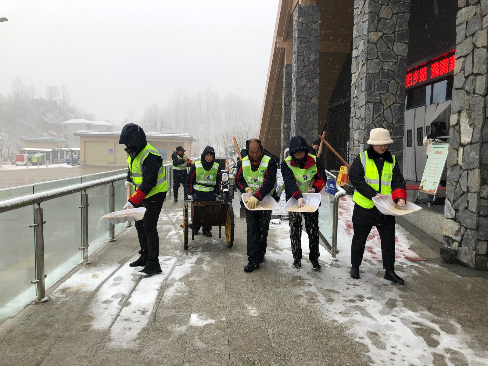 來(lái)源: 本站 發(fā)布時(shí)間: 2024-02-04為有效應(yīng)對(duì)雨雪冰凍惡劣天氣影響,保障司乘暢通出行,2月4日,中油高速公司以雪為令、迅速出擊,按照“全覆蓋、無(wú)死角、保暢通”原則持續(xù)開(kāi)展除雪保通、服務(wù)保障工作。一是清掃站內(nèi)積雪,及時(shí)撒布融雪劑,鋪設(shè)防滑墊、放置安全提示標(biāo)志,提醒過(guò)往司乘注意安全;二是密切關(guān)注天…