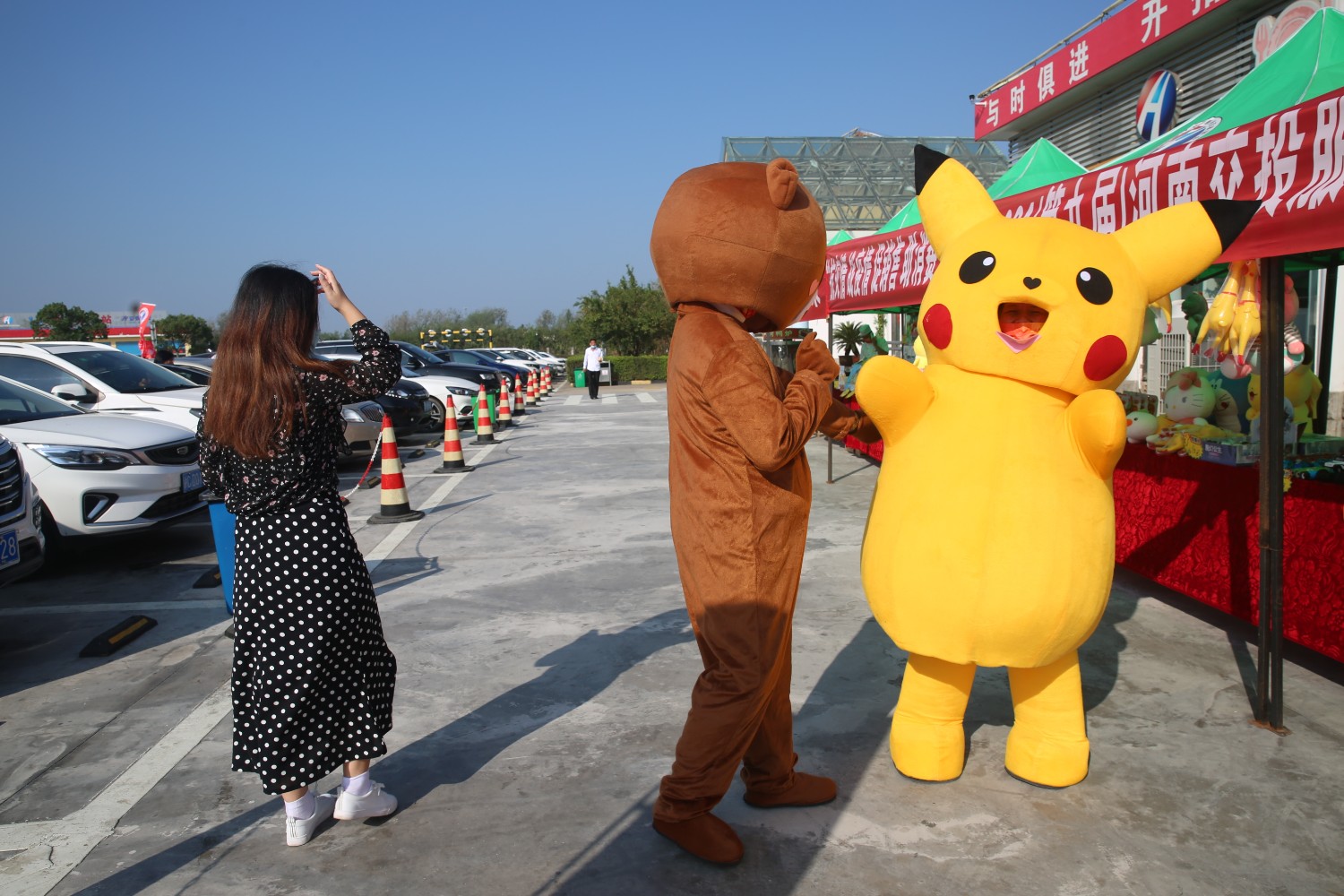 展銷會(huì)上,小朋友被玩偶吸引。(拍攝:趙丁?。?JPG