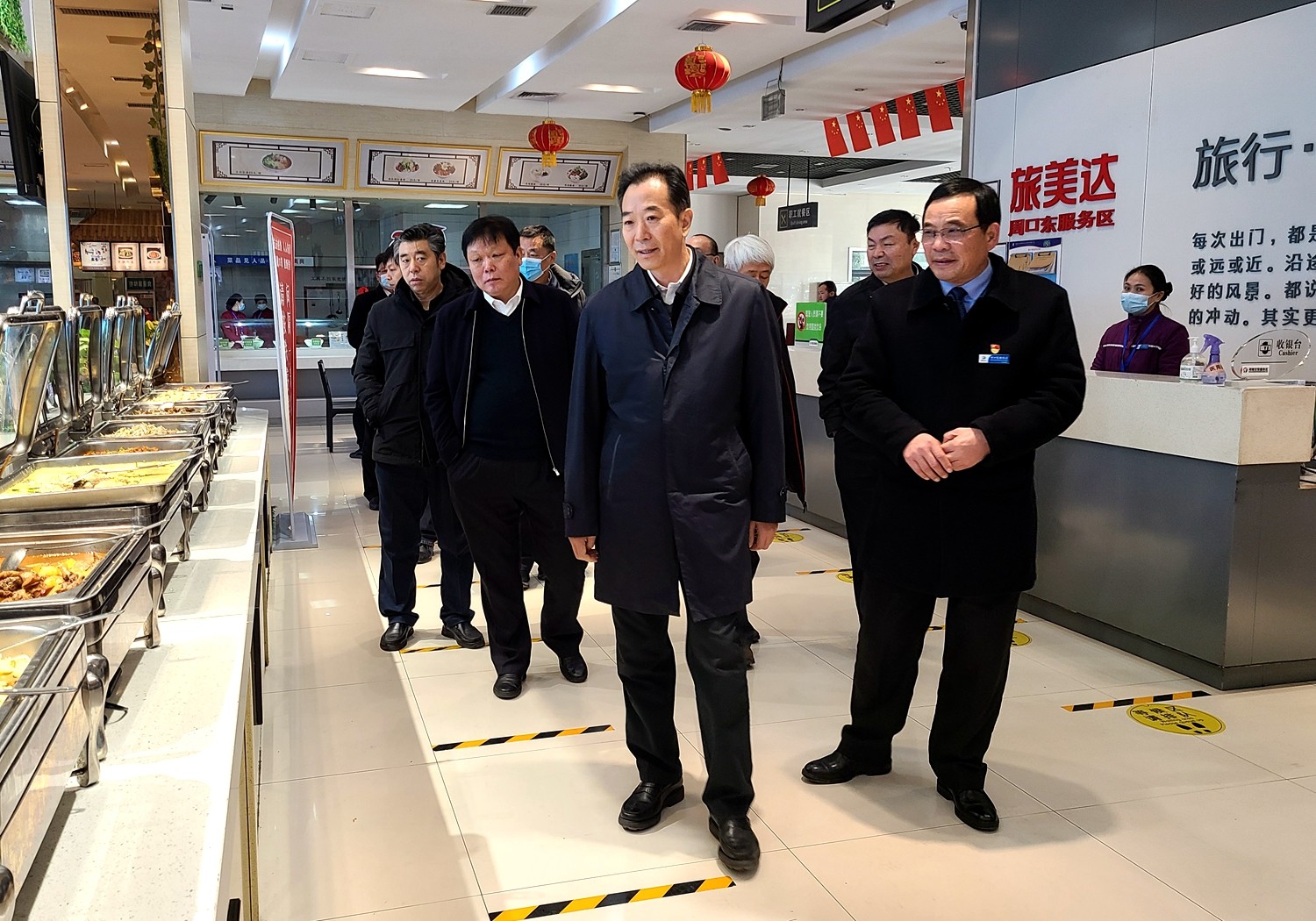 來源: 本站 發(fā)布時間: 2021-01-141月14日,河南省副省長何金平,省交通運輸廳廳長李衛(wèi)東、副廳長徐強一行到禹州、平頂山南服務(wù)區(qū)檢查指導(dǎo)工作。何金平副省長現(xiàn)場查看了服務(wù)區(qū)便利店、餐廳等區(qū)域,重點查看了禹州服務(wù)區(qū)鈞瓷展廳、司機之家、大件運輸服務(wù)點,詳細了解了司機之家、大件運輸點的服務(wù)功能及扶貧專柜…