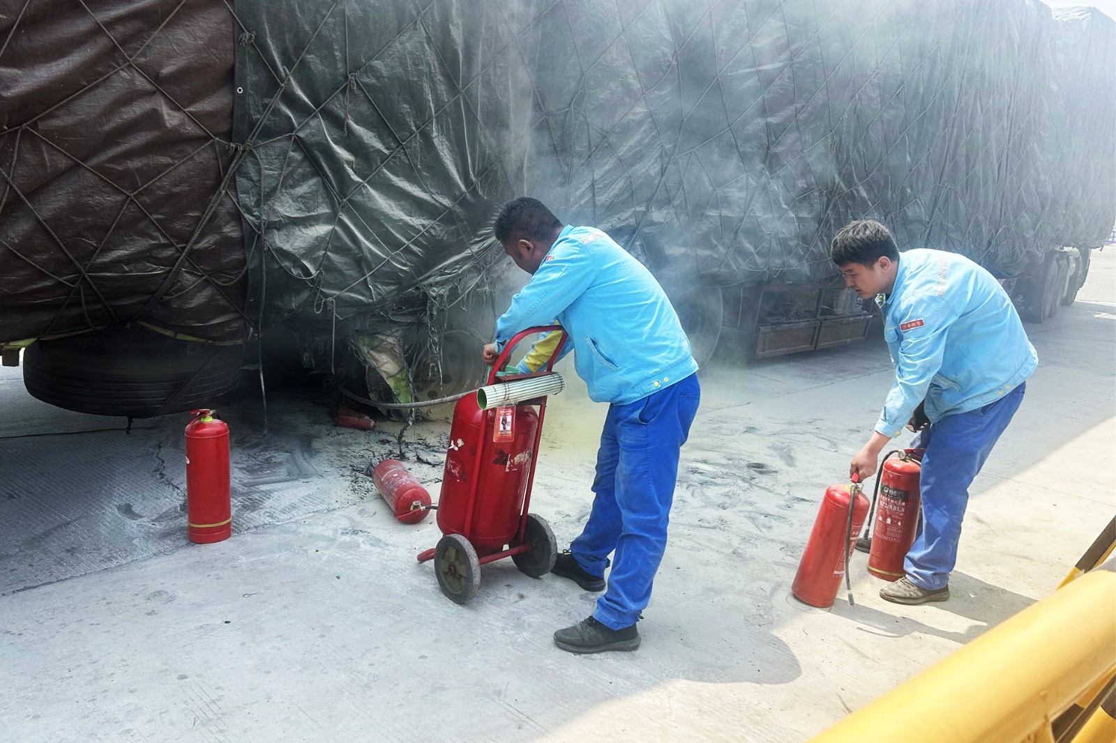 大貨車突發(fā)自燃 三門峽服務(wù)區(qū)緊急救援顯真情