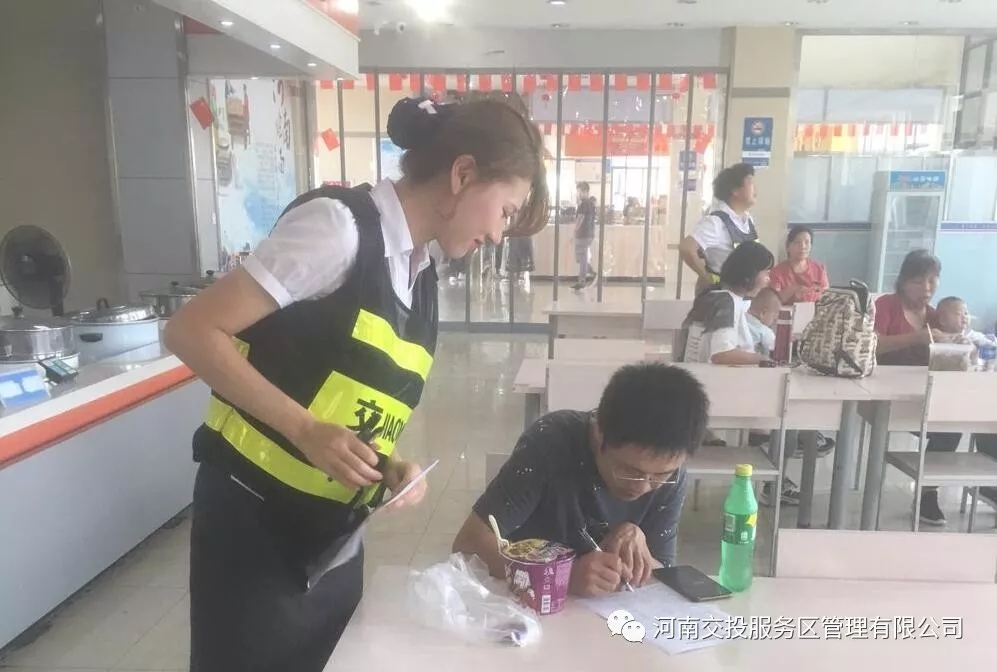 各服務(wù)區(qū)完善相關(guān)便民措施,開展志愿者服務(wù)、愛心救助等形式多樣的服務(wù)活動(dòng),樹立良好的社會(huì)形象,為司乘人員提供幫助,如鶴壁服務(wù)區(qū)10月3日接到參加國慶節(jié)70年慶典凱旋歸來的河南鵝坡武校師生,共計(jì)20余輛大巴車、1600余名人員要在服務(wù)區(qū)停留休整的通知后,緊急啟動(dòng)應(yīng)急服務(wù)保障預(yù)案,全力為凱旋團(tuán)人員、車輛提供服務(wù)保障,圓滿完成保障任務(wù)。周口東服務(wù)區(qū)成立了“小紅帽”黨員青年志愿者服務(wù)隊(duì),在國慶假日期間深入到餐廳、超市、廣場等區(qū)域,為廣大顧客做好咨詢引導(dǎo)、秩序維護(hù)、助殘幫老等志愿服務(wù)工作,最大限度的為顧客提供的幫助,受到廣泛好評(píng)。中牟南服務(wù)區(qū)開展司乘滿意度調(diào)查活動(dòng) 各服務(wù)區(qū)完善社會(huì)監(jiān)督機(jī)制,設(shè)立服務(wù)意見箱,積極借鑒、吸納司乘人員提出的合理化意見和建議,如中牟南服務(wù)區(qū)開展司乘滿意度調(diào)查活動(dòng),有效促進(jìn)了國慶期間服務(wù)區(qū)服務(wù)保通工作的順利開展。節(jié)日期間,公司各服務(wù)區(qū)秩序井然,未出現(xiàn)斷貨、食品安全等問題。